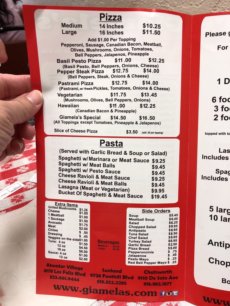 Giamela's Submarine Sandwiches offers a diverse menu featuring pasta, pizza, and sandwiches in a casual setting. Located in Los Angeles, CA, this restaurant provides various amenities such as delivery, takeout, reservations, and outdoor seating. The establishment is accessible for all, with parking available near the entrance and ADA-compliant facilities. Customers can enjoy happy hour specials, alcohol, and Wi-Fi while dining with their furry friends as dogs are allowed. With a focus on good food for lunch, catering options, and a family-friendly environment, Giamela's Submarine Sandwiches is a great choice for groups and kids. The menu showcases a variety of delicious and satisfying dishes, making it a must-try for those looking for a relaxed dining experience.