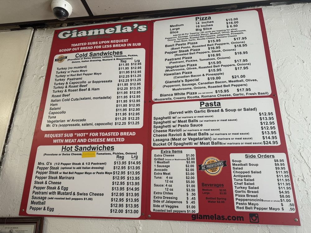 Giamela's Submarine Sandwiches Menu (2025 Update)